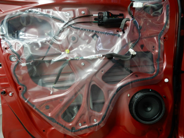 その後、インナー部分に制振材を張り付けてドアパネルの作業は完成です。