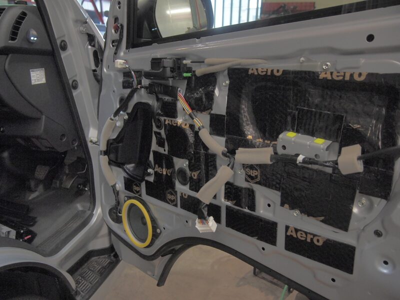 内張りを外し、制振材と遮音材の施工をしていきます(。-`ω-)
