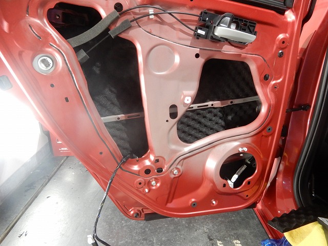 この工程を経た後にドアの内張り側にも吸音材を施工し、ドアは全て施工完了となるのです(。-`ω-)
