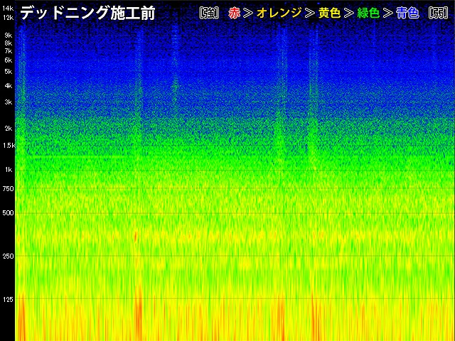 確かに施工前のスペクトグラムを見ると、125Hz帯域にしっかりとノイズがかかっているのがわかりますね(;´・ω・)