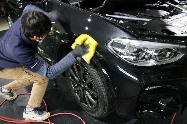 入念に下地処理を行った後、セラミックプロ9Hコーティングの塗布作業に入ります。
