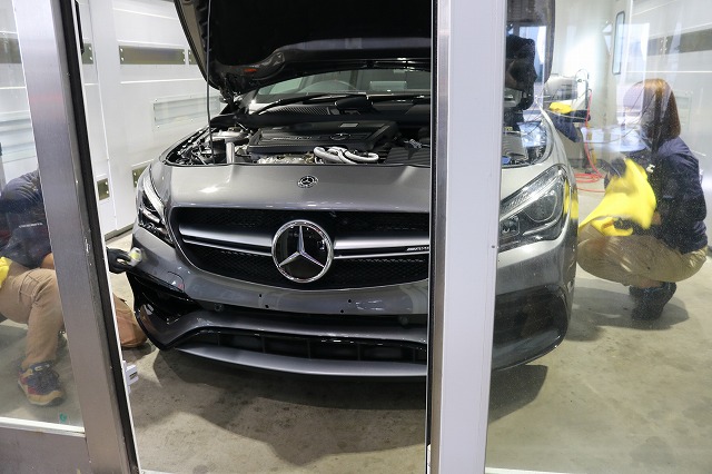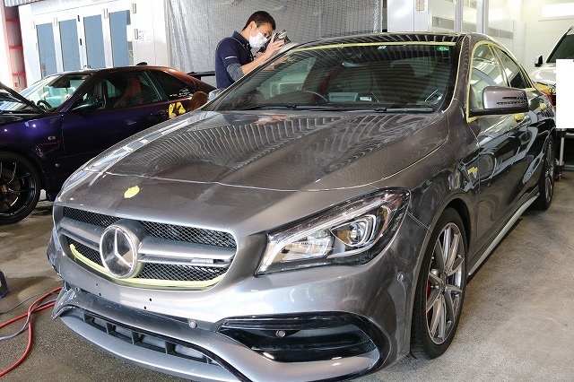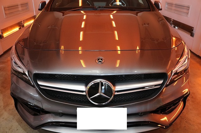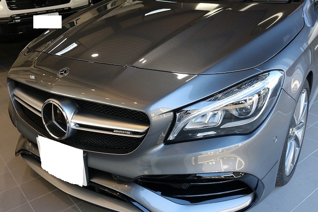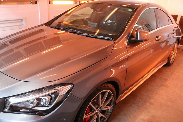 ガンメタリックの素敵なメルセデスベンツAMG CLA45のお車がご入庫いたしました。