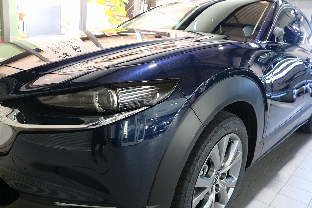 今回、東京都葛飾区よりご来店のT様の新車のマツダCX-30にファインラボヒールライト、およびウインドウコート全面、プラスチックコーティング(エクステリア)を施工させていただきましたのでご紹介いたします。