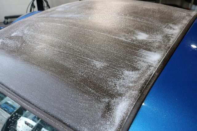 まずルーフのシミや汚れを専用薬剤を使って落としていきます。
