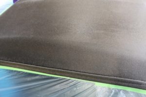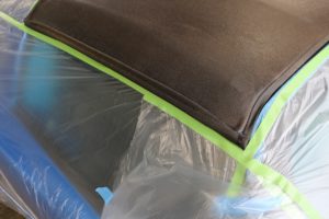 しばらく浸してから洗い流し、遠赤外線でしっかりと乾燥させてからコーティングしていきます(^^)/その際、溶剤がボディや窓に付着しないようマスカーをします。