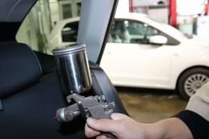 吹き出し量を増やすと他の部分にも付着してしまうので量を少なくし細心の注意を払っていきます。