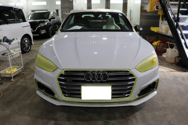 渋谷区からお越しのA様のアウディS5カブリオレにセラミックコーティングのプレミアムフルコースの施工をさせて頂きました!前回のシートコーティングに引き続き、今回は研磨工程を経てからセラミックコーティングを致しました。新型の新車でしたがやはり小傷はございますので、研磨の魔術師がその傷を取り除いていきます。A様のカブリオレですがボディの状態は良いほうでした。研磨もガンガン磨いて小傷なしに近い状態もキレイですが、塗装表面のクリア塗装があるから車はキレイという面もございます。ですので研磨される際はどの程度まで磨いていくかとかのご相談をしっかりとさせて頂きたいと思っております(^^)/