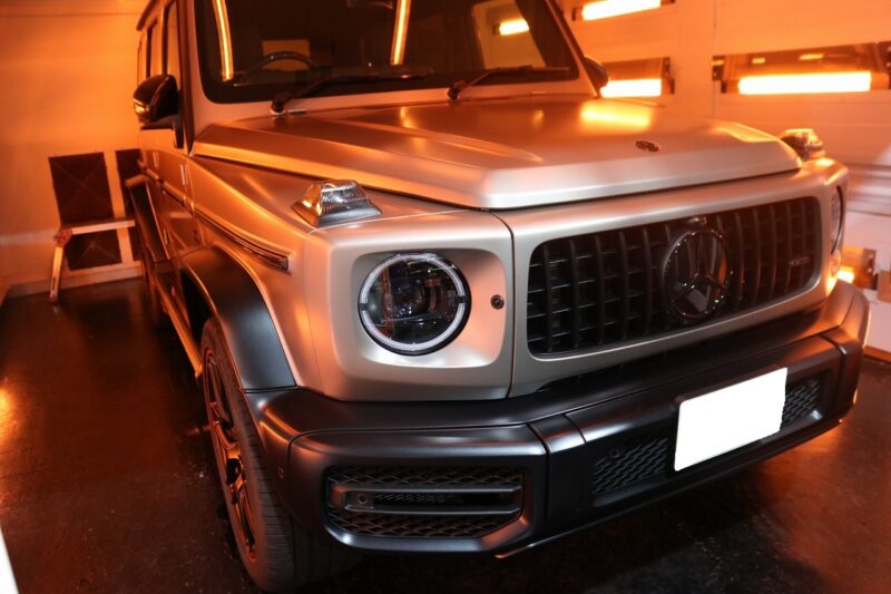 マットカラーのメルセデスベンツGクラスに強くて固い被膜のカーコーティング施工 東京都より