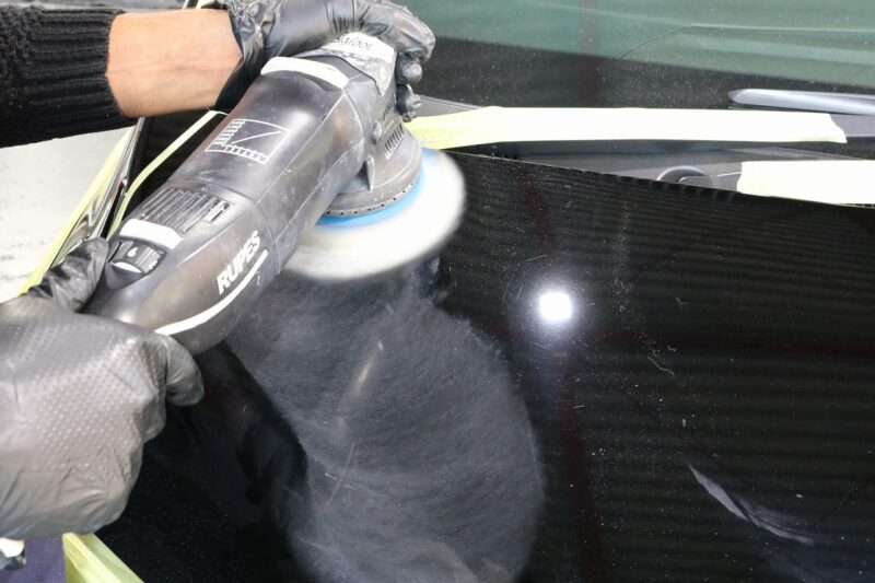 コーティング塗布の前にバインダー作業を行い、塗装面とコーティング剤をより密着させるための定着剤を塗布します。