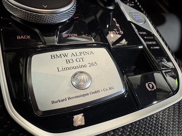 コンソール部分には、アルピナならではのシリアルナンバーが刻印された専用プレートが備えられており、1台ごとに異なる個体であることが分かります。
