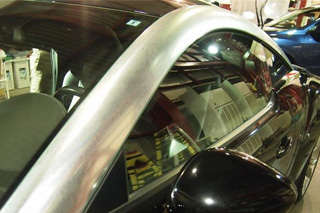 RCZは大きなピラーが特徴でAピラーからCピラーまでアルミ製のパネル(アルミナムアーチ)で一体化されています。経年劣化で白濁し、光沢がなくなってしまったので黒カーボン調のラッピングを行う事になりました。