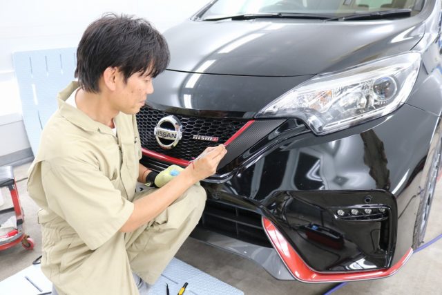 今回の施工箇所は、フロントグリルのメッキの箇所