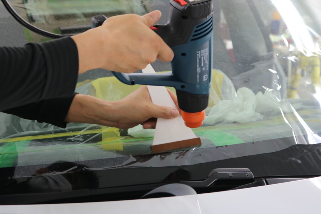 精密にコンピューターカットされたフィルムを、内側へ密着させながら貼りつけていきます。
