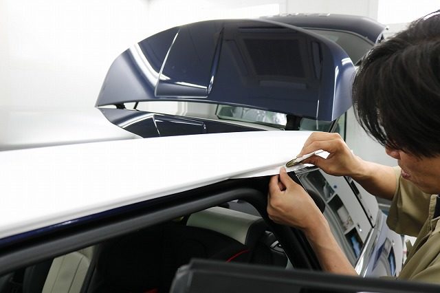 ルーフラッピングと言っても大きなガラスのパノラマルーフですので、周りのフレームに施工となります。