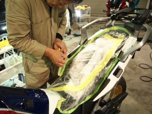 こちらは、タンクやカウルなどのパネル面はセラミックコートの強固な被膜で塗装面を保護します。