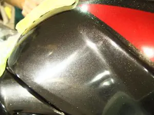 濃色のタンクは、クリア傷が目立ちますね。