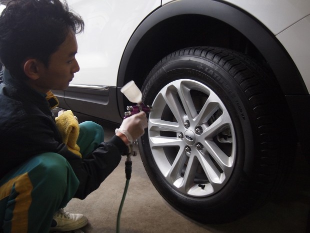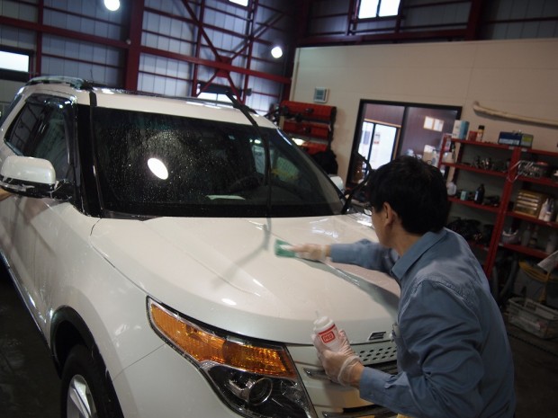 今回ご入庫いただきましたフォードエクスプローラーは新車でしたので、塗装面も綺麗な状態でした。