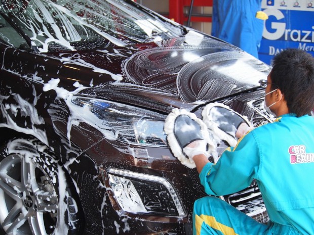 研磨後は一度塗装面をフラットにするため、洗車をしていきます。