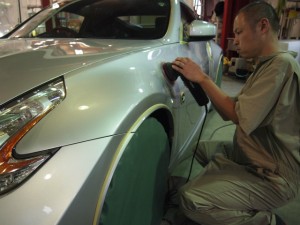 磨き作業を終え、塗装面にエシュロンコーティングの被膜を形成していきます。
