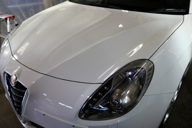 本日は埼玉県よりご来店のアルファロメオ、ジュリエッタにエシュロンコーティングを施工させていただきました。新車でご依頼を頂きましたのでとても綺麗な状態でした。(^^♪