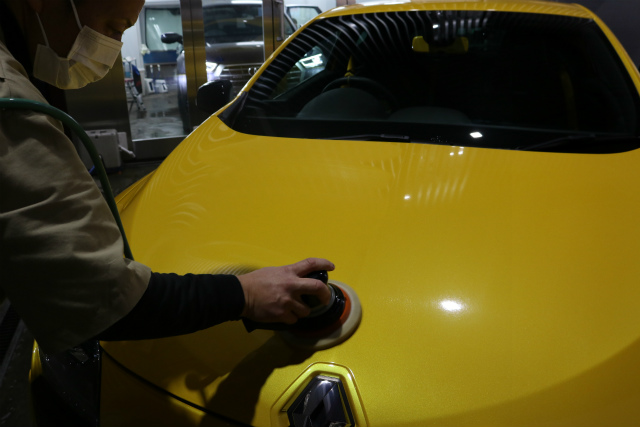 まずは表面の汚れをしっかりと落とした後に保護液を塗布していきます。