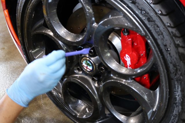 ホイールの裏や奥まで手を入れ汚れや鉄粉などを見逃しません!!