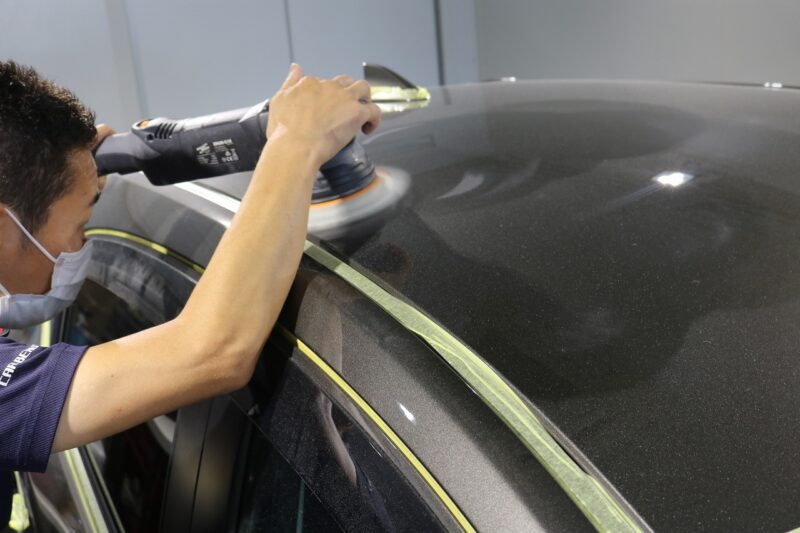 下地処理で隅々の汚れを落とし、塗装面を鏡面に仕上げるために研磨作業を行います。
