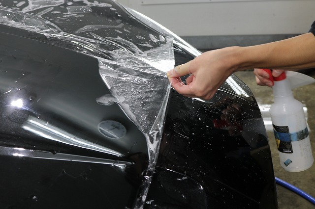 ボディーの保護を目的としたコーティングとは全く異なるこのプロテクションフィルムは、1枚の透明な特殊フィルムで塗装面を覆うことで飛び石やキズから愛車を守ります。最大の特徴はフィルムを剥がせば新車のような状態に戻ること。飛び石やキズはプロテクションフィルムが吸収し、ボディーの塗装面を傷めません。これにより売却時はもちろん、レースや日常の中でもフィルムを剥がすことで美しいボディーに戻すことが出来るのです。