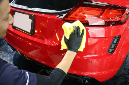 アウディの塗装面は非常に硬いため、ポリッシュ作業も時間がかかります。塗装面に付着したスクラッチ傷やイオンデポジットなどを研磨作業で新車のように仕上げていきます。この作業を行うことで塗装面とコーティング被膜の密着性も向上します。コーティング作業で最も重要なのは研磨作業です。