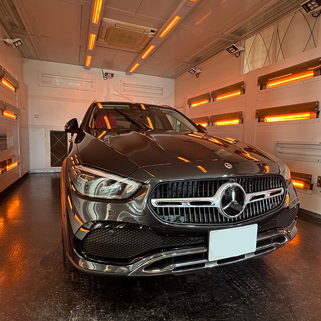 IICのカーコーティングは全種遠赤外線乾燥ブースによる熱乾燥を実施します。これにより完全硬化までに1カ月程度かかっていたものが数時間で完全硬化されるためシミの付着を防止し、硬度、光沢、撥水性能を向上させることに成功しました。納車後、すぐに雨に濡れてしまった場合でもコーティングが剥がれる心配はありません。