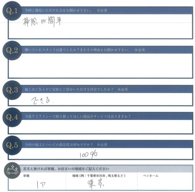 アイアイシーでは1ヶ月後に点検洗車を行いお客様の声を頂戴しております