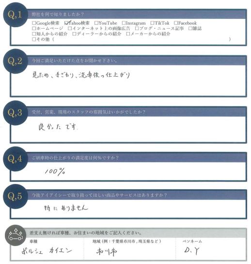 アイアイシーでは1ヶ月後に点検洗車を行いお客様の声を頂戴しております