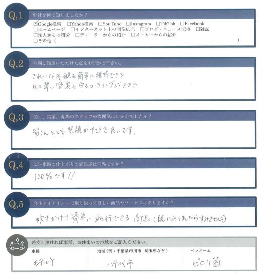 アイアイシーでは1ヶ月後に点検洗車を行いお客様の声を頂戴しております