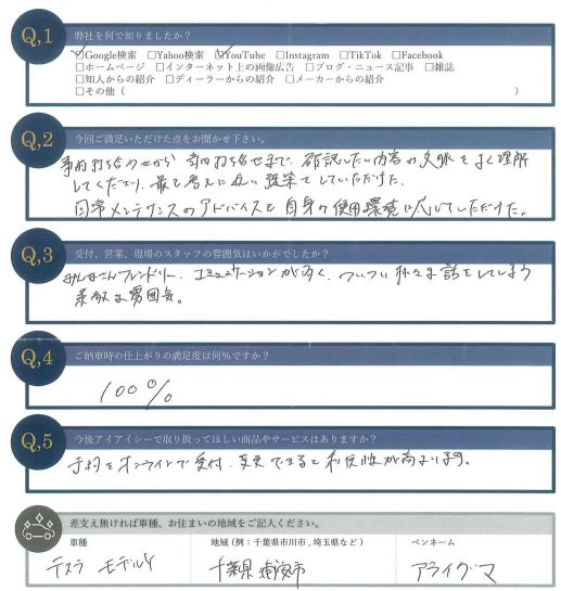 Q2.今回ご満足いただけた点をお聞かせ下さい。
