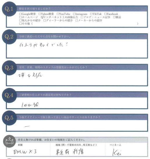 アイアイシーでは1ヶ月後に点検洗車を行いお客様の声を頂戴しております