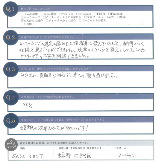 洗車のノウハウを教えてくれたこともアフターケアの不安を解消できました。