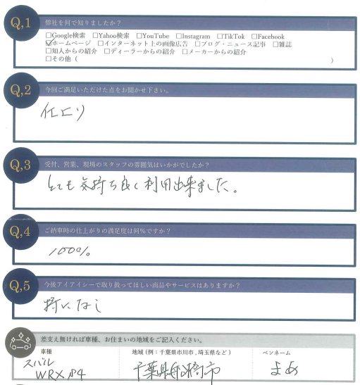 アイアイシーでは1ヶ月後に点検洗車を行いお客様の声を頂戴しております
