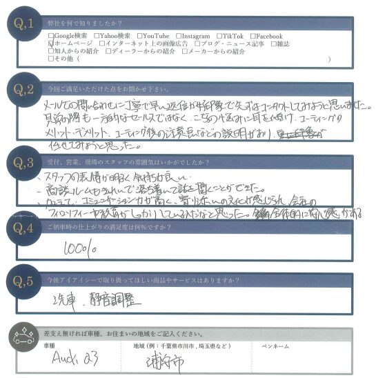 Q2.今回ご満足いただけた点をお聞かせ下さい。